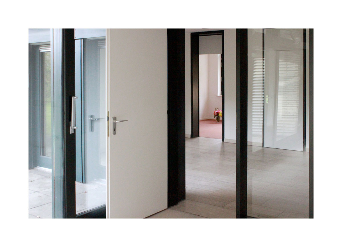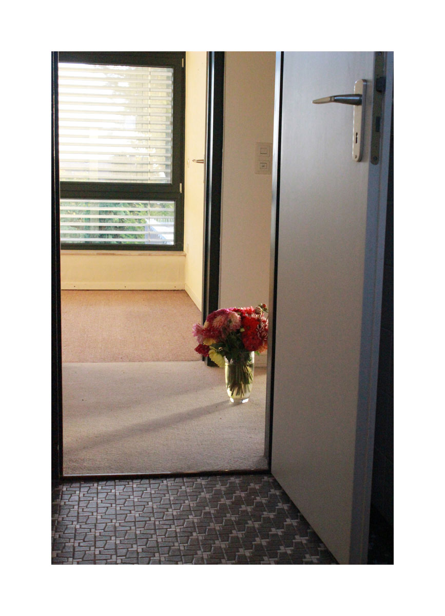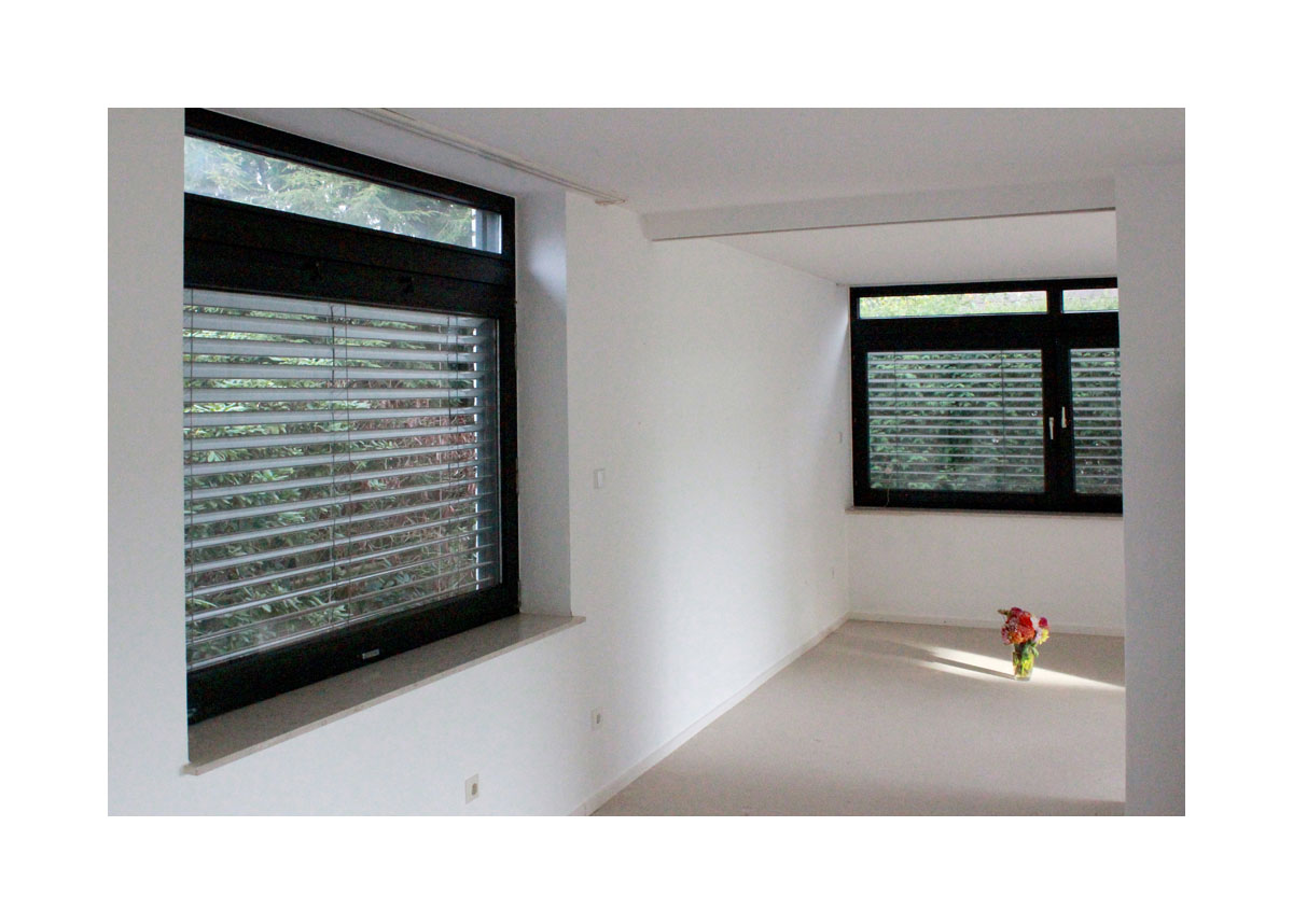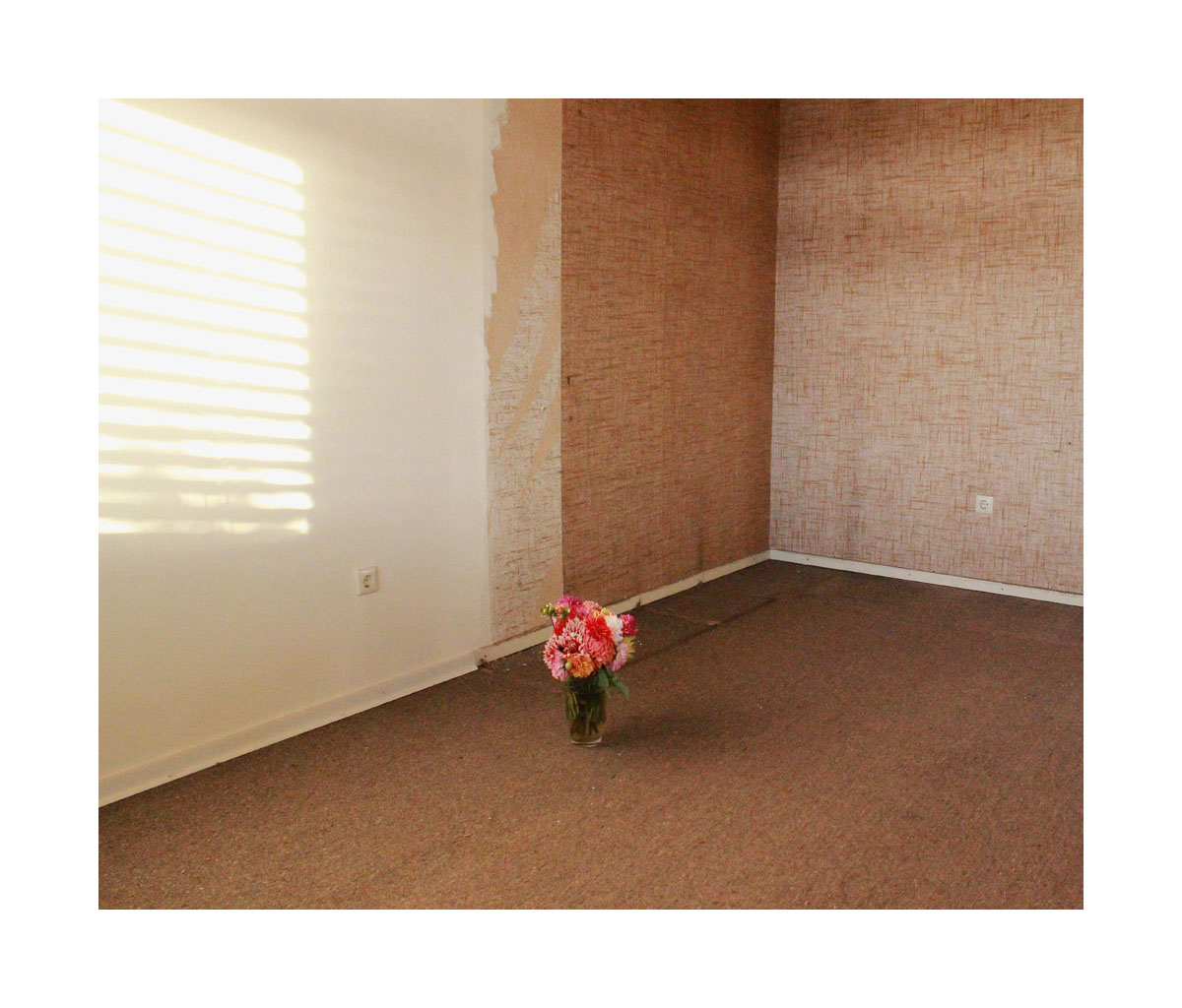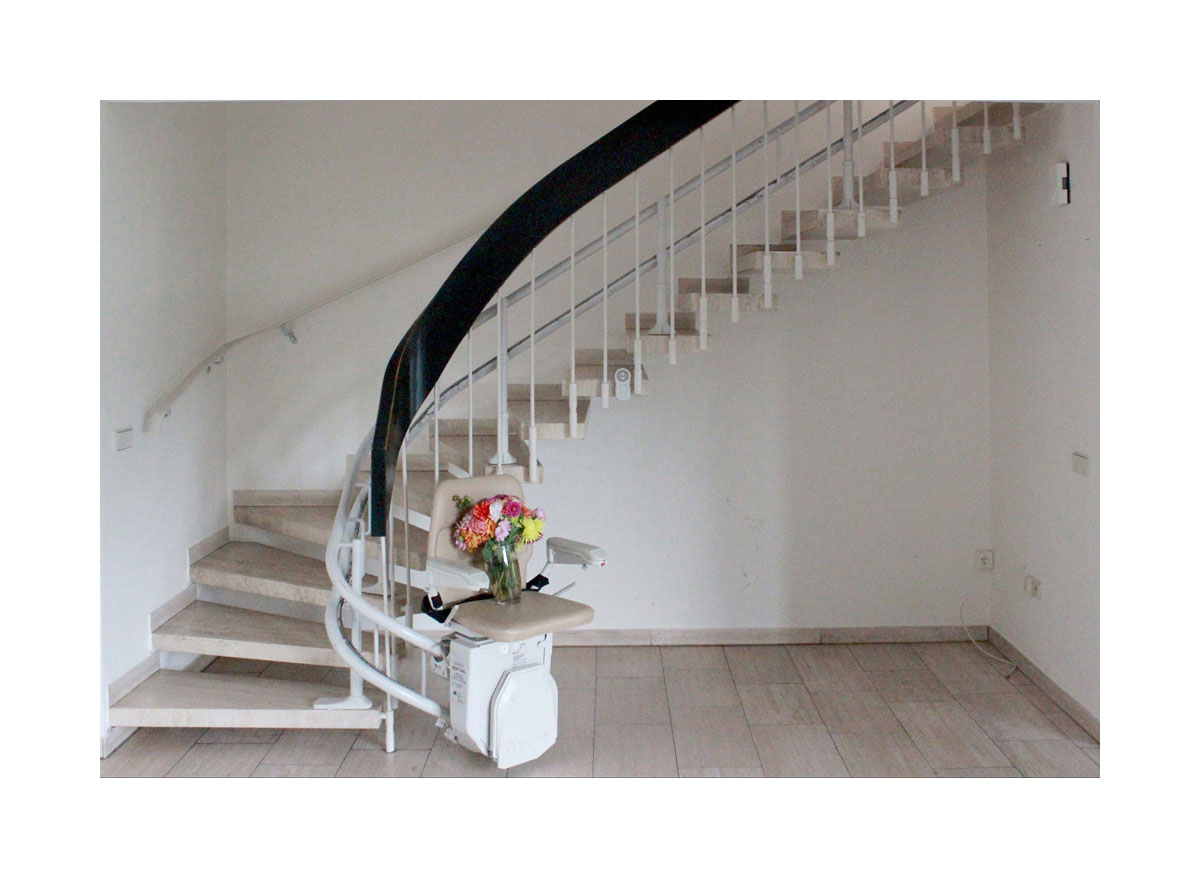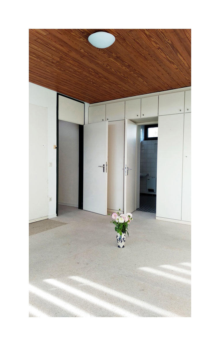 Gertrud Neuhaus’ Ausstellung ‚neigen’ vereint 14 Fotografien von architektonischen Versatzstücken  der Innenräume eines verlassenen Einfamilienhauses.  Bis auf wenige schemenhafte Ausnahmen bildet sich die Außenwelt nur als Lichteinfall im Innern der Räume ab. Eine den Aufnahmen innewohnende Anmutung von Entrücktheit und stiller Intimität ist geerdet durch das wiederkehrende Element einer üppig gefüllten Blumenvase, die eher als verneigende Geste (gegenüber einer Vergangenheit), denn als memento mori (Neige) platziert ist, und die doch die Wahrnehmung eines metaphysischen Schwebezustands in den Bildern verfestigt.