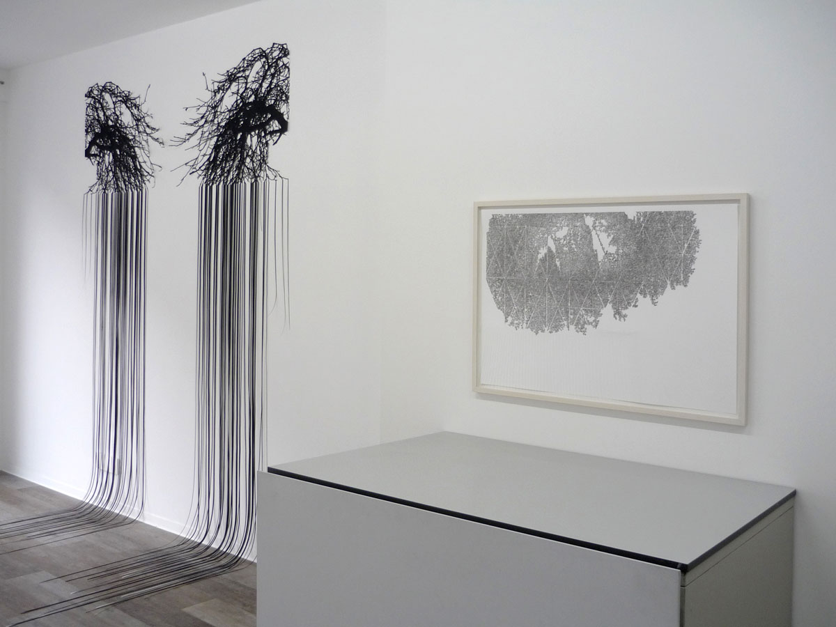 Ein Konvolut kleinformatiger, gezeichneter Erinnerungsorte bildet dabei die Basis ihres Schaffens. Diese haben bereits einen Prozess der Transformation auf etwas Wesentliches durchlaufen und bilden in ihrer Konzentration intime Destillate des Gewesenen. Gleichzeitig können sie auch Ausgangspunkt sein, für komplexe Bildkonzeptionen bis hin zu Raum füllenden, skulpturalen Installationen.